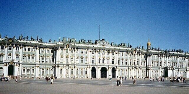 The Hermitage is in St. Petersburg, Russia, housed partly in the Winter Palace with enormous art collections.