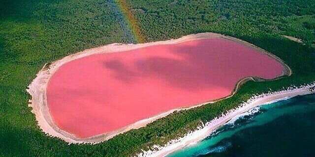 Lake Hillier is in Australia near Esperance, known for striking pink water beside blue ocean views.