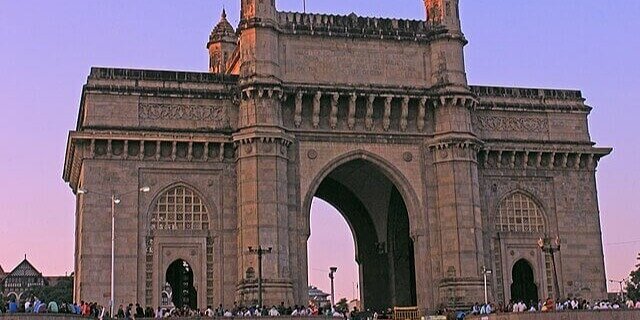 The Gateway of India stands on the waterfront in Mumbai, India, built during the British colonial period.